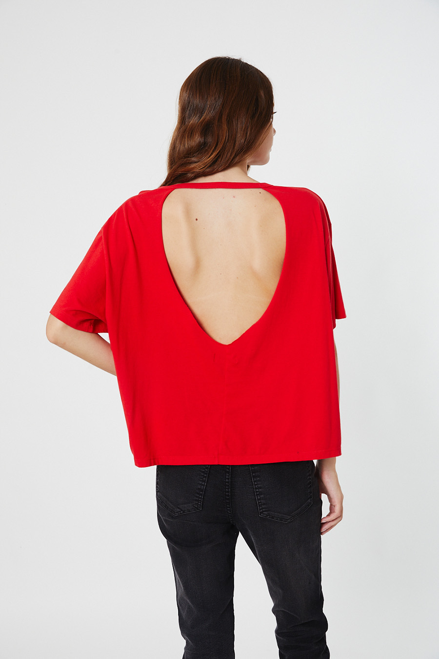 REMERA CONFECCIONADA EN JERSEY, CALCE AMPLIO Y HOMBROS CAIDOS. ESPALDA ESCOTADA. ESTAMPADA.