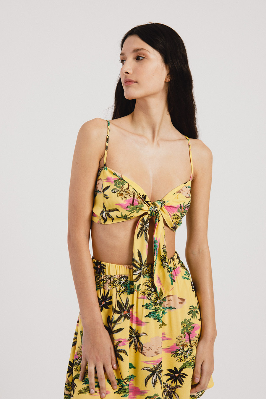 MUSCULOSA BÁSICA CONFECCIONADA EN TEJIDO TIPO PANAL, CON BRETELES ANCHOS.