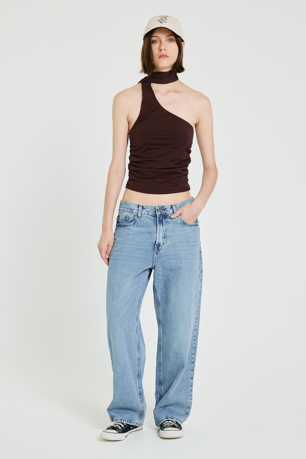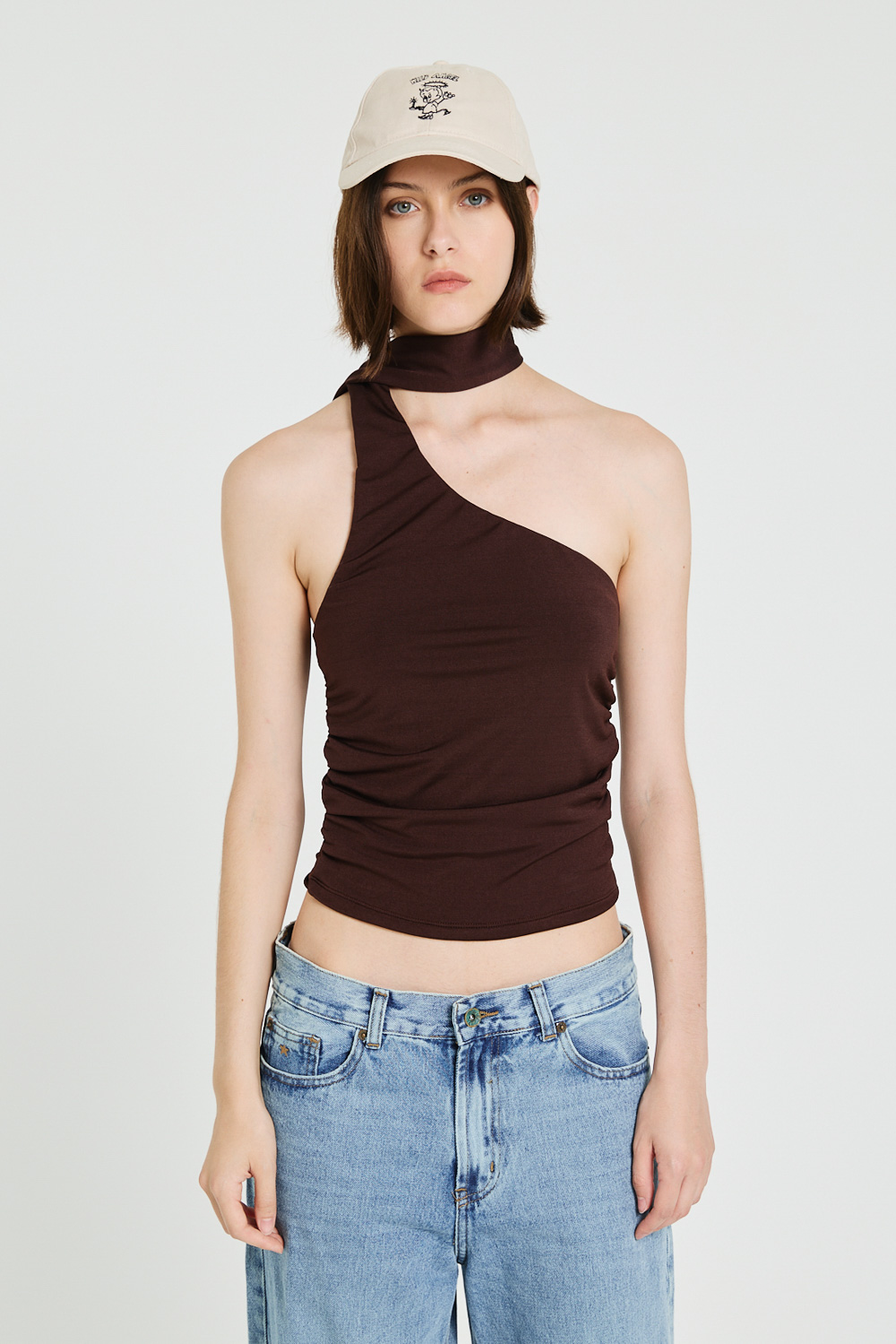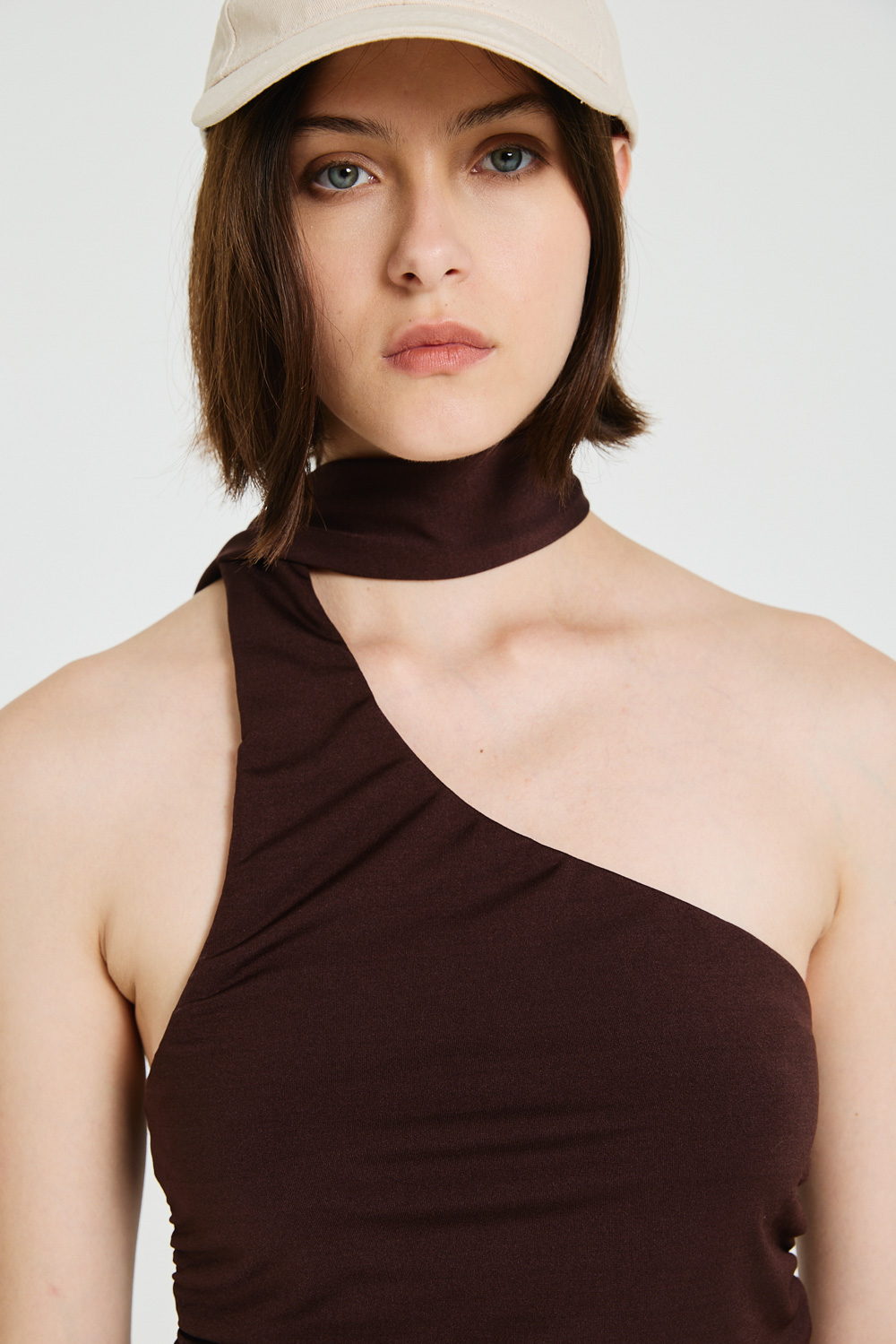 TOP CONFECCIONADO EN MICROFIBRA CON ESPALDA DESCUBIERTA Y LAZO PARA CUELLO