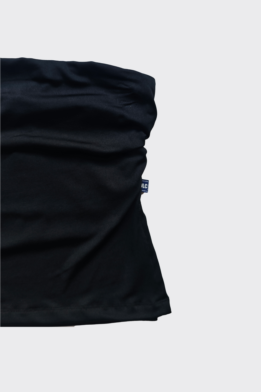 STRAPLESS CONFECCIONADO EN MICROFIBRA CON TAJO EN LATERAL IZQUIERDO Y ELASTICO EN LATERALES PARA GENERAR FRUNCIDO