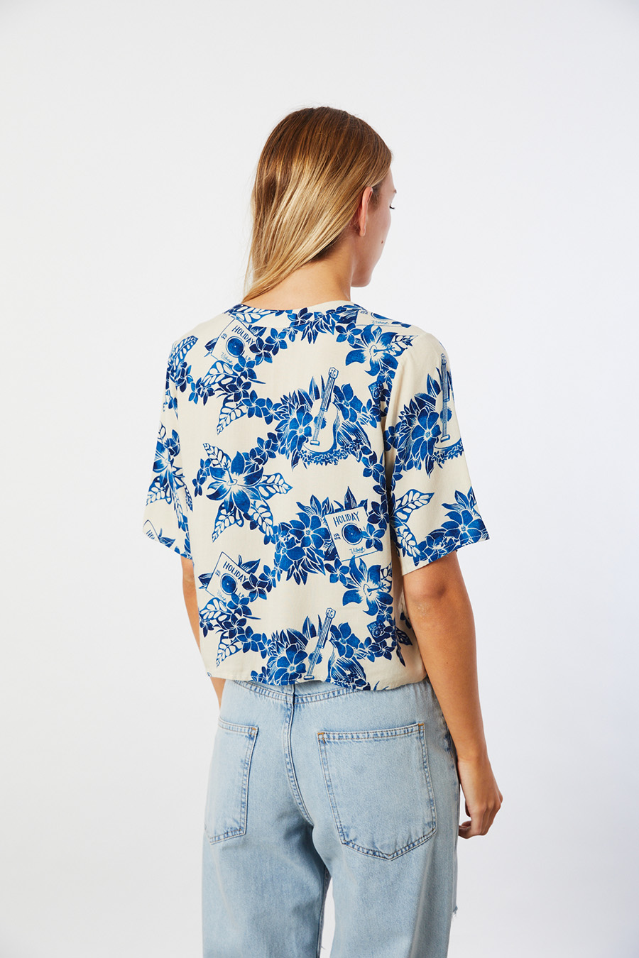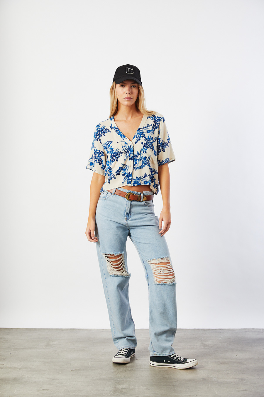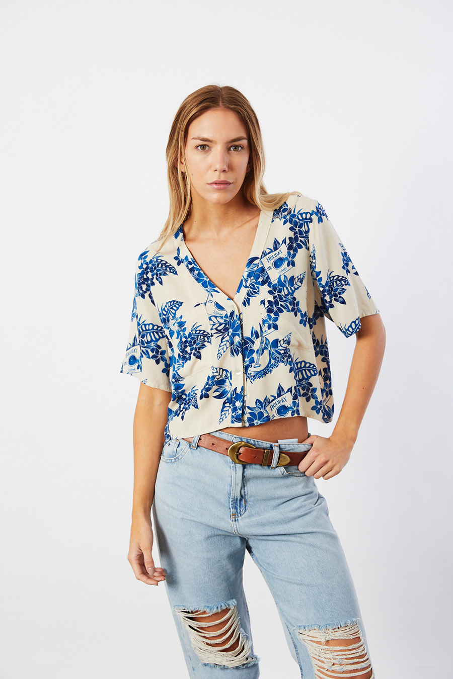 CAMISA CONFECCIONADA EN FIBRANA ESTAMPADA. CON BOLSILLO EN EL FRENTE. CALCE AMPLIO. ACCESO DELANTERO MEDIANTE BOTONES.