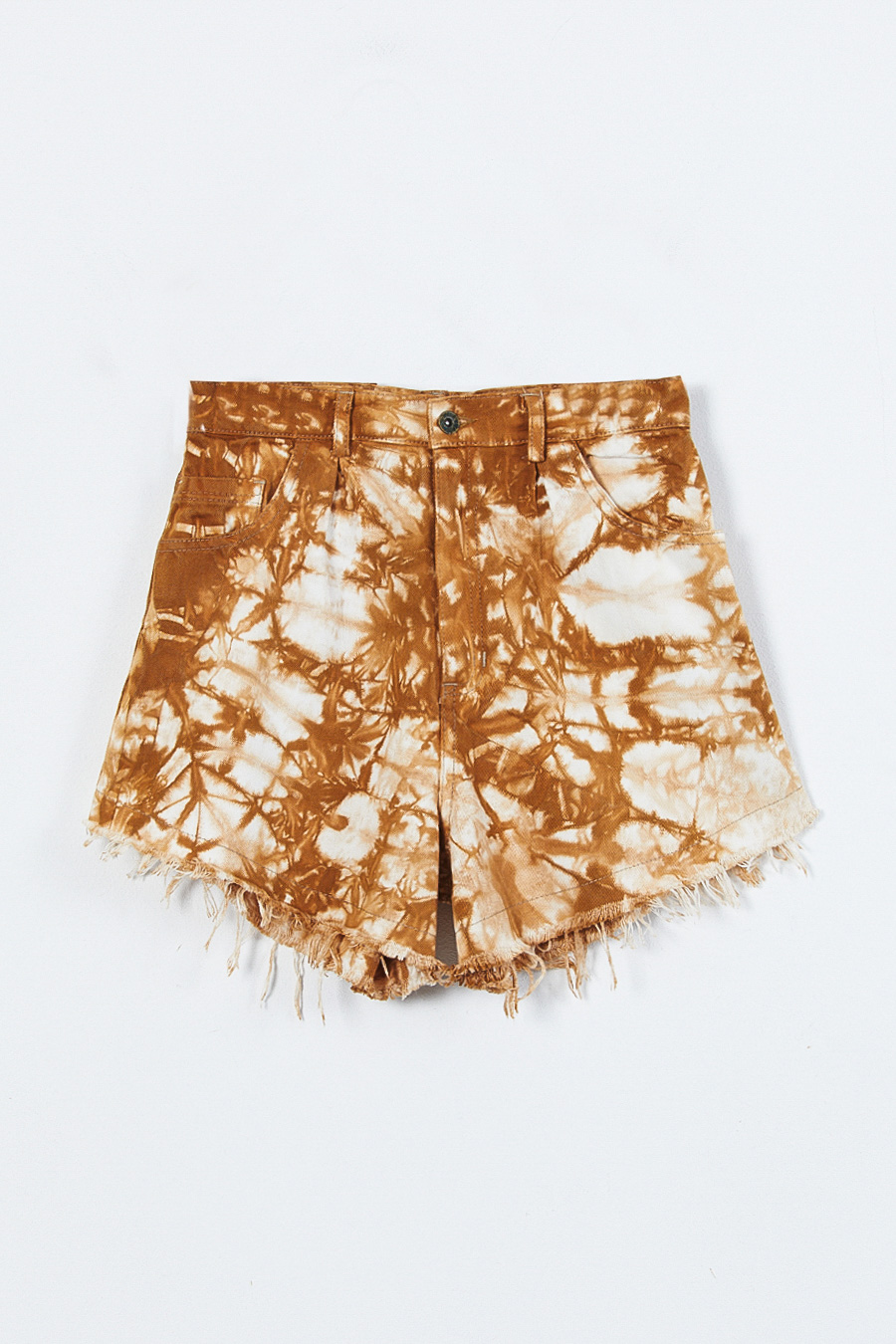 SHORT TIRO ALTO CONFECCIONADO EN GABARDINA TEÑIDA CALCE AMPLIO Y RUEDOS DESHILACHADOS. ACCESO POR CARTERA CON CIERRE Y BOTÓN DELANTERO.