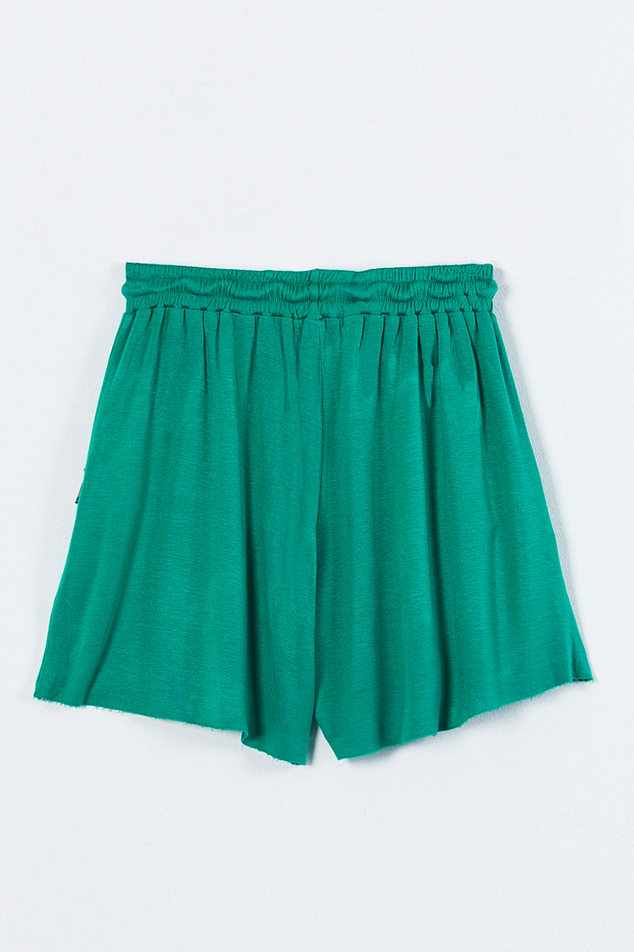 SHORT DE RÚSTICO LIVIANO, CON ELÁSTICO EN CINTURA Y BOLSILLOS LATERALES.