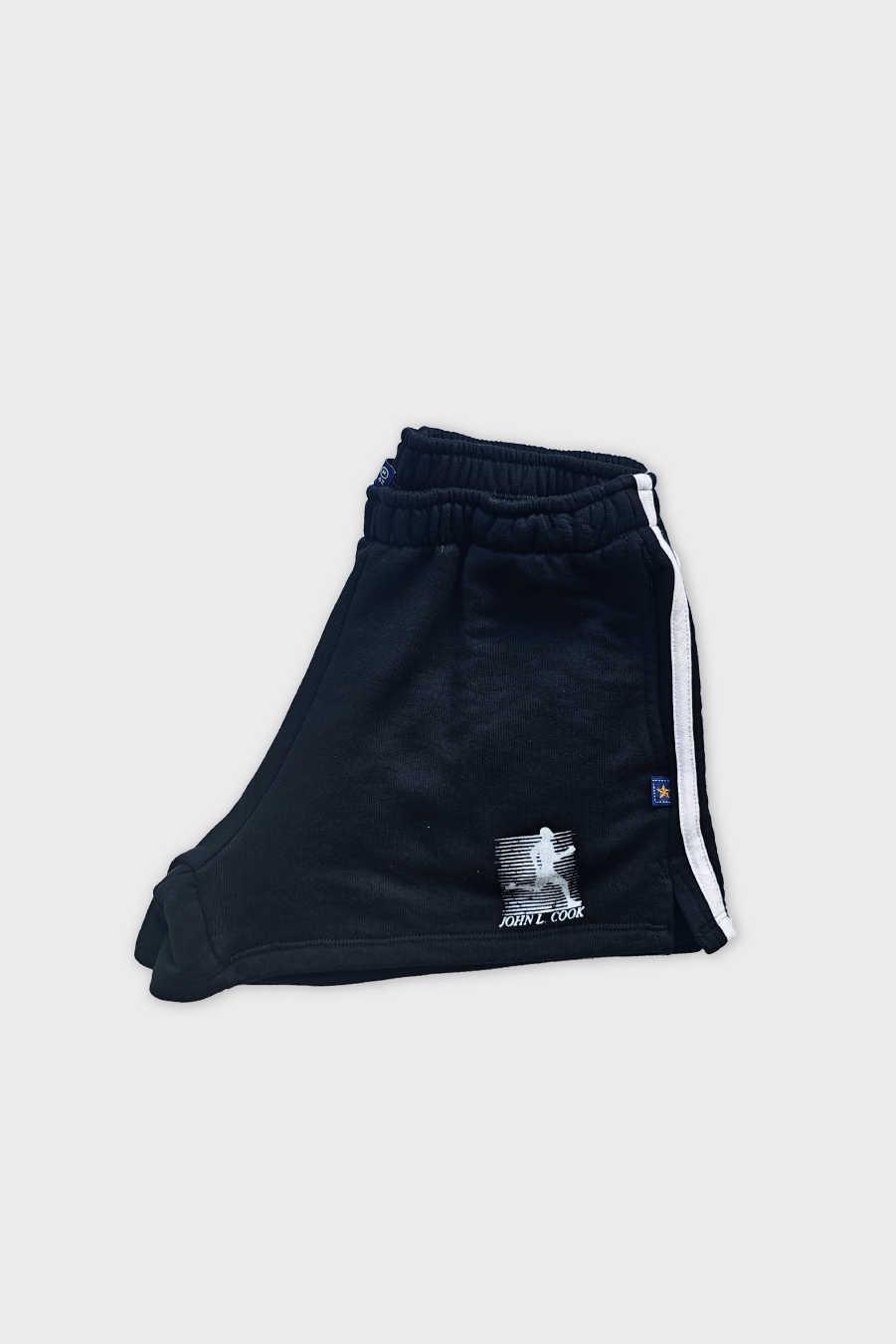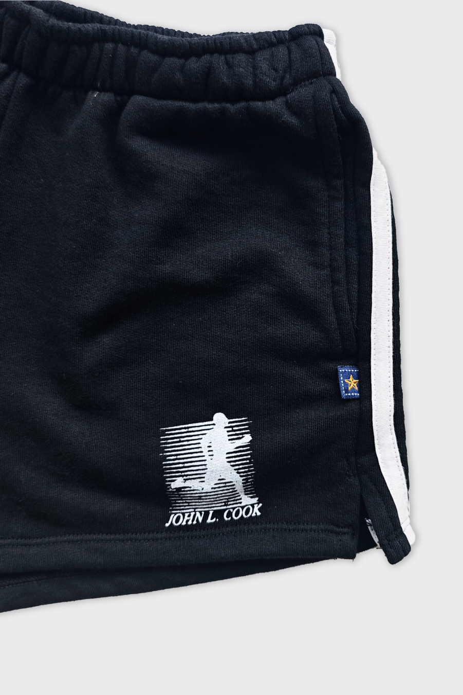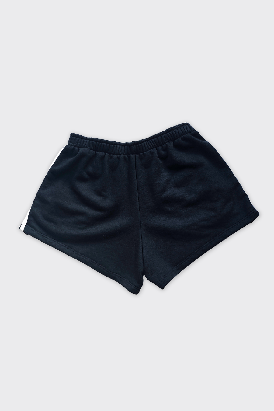SHORT CONFECCIONADO EN RUSTICO CON TIRILLAS EN LATERALES, BOLSILLO Y ESTAMPA EN DELANTERA