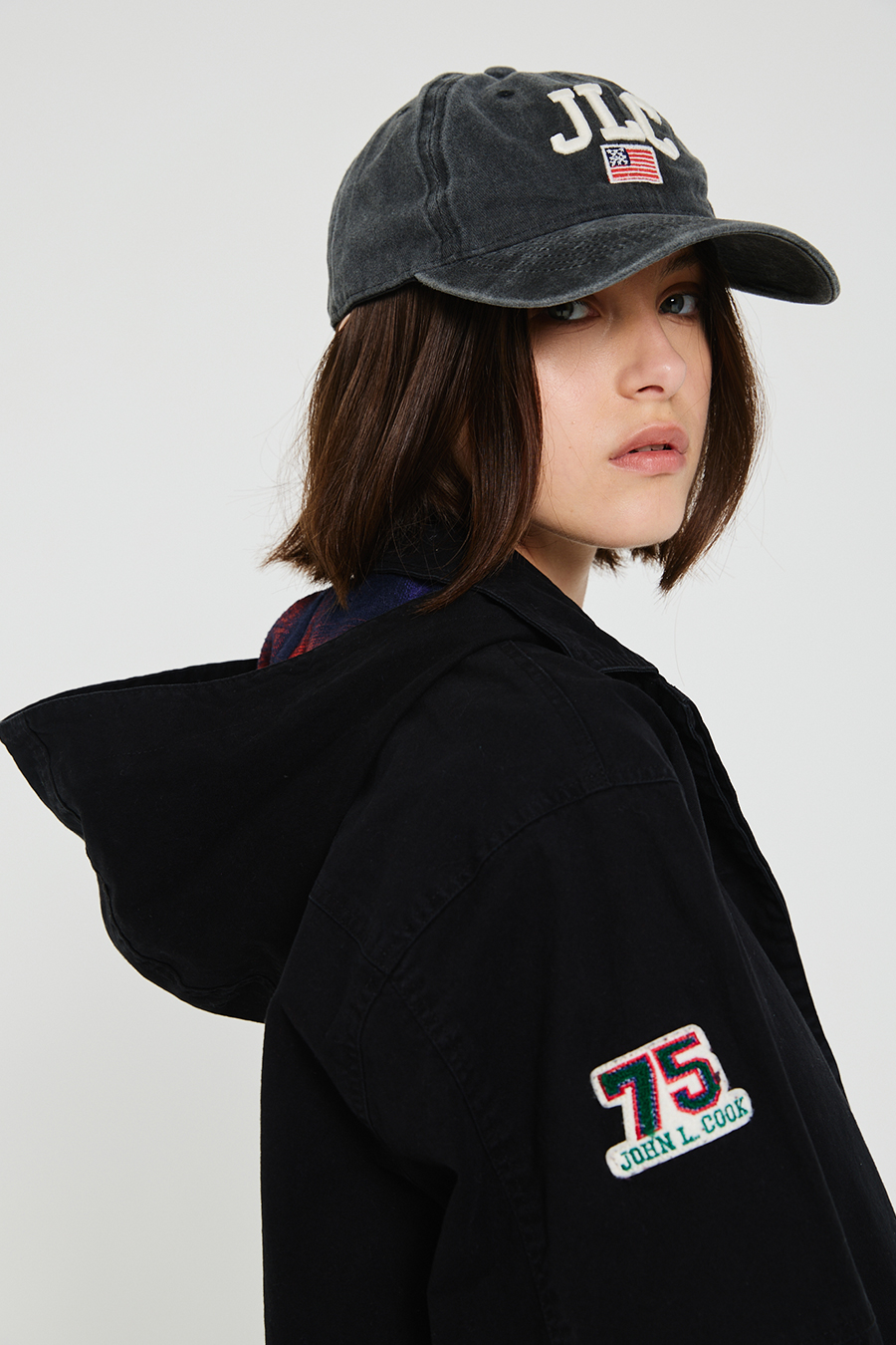 CAMPERA CONFECCIONADA EN GABARDINA DE ALGODÓN, ACCESO CON BOTONES OCULTOS EN CARTERA DELANTERA.