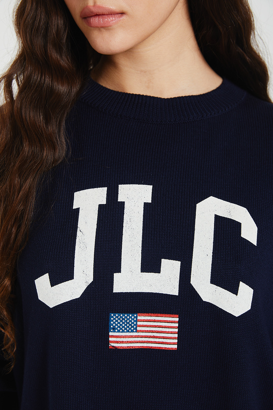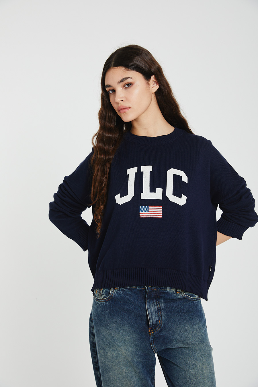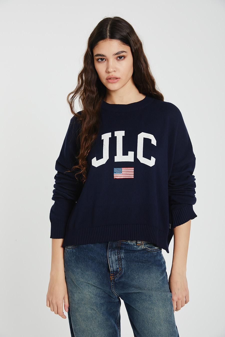 SWEATER DE CALCE HOLGADO, EN ALGODON CON ESTAMPADO EN EL FRENTE.