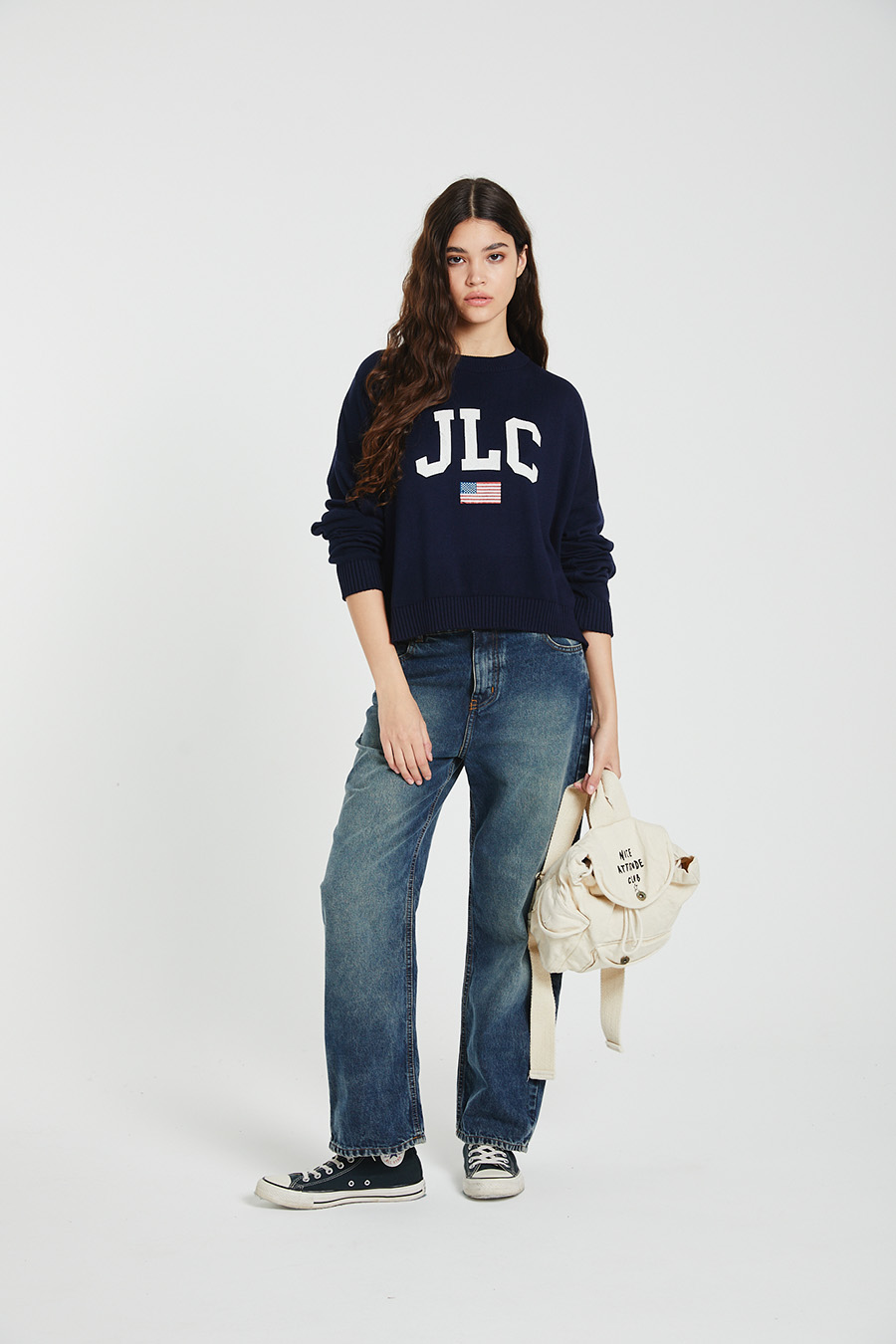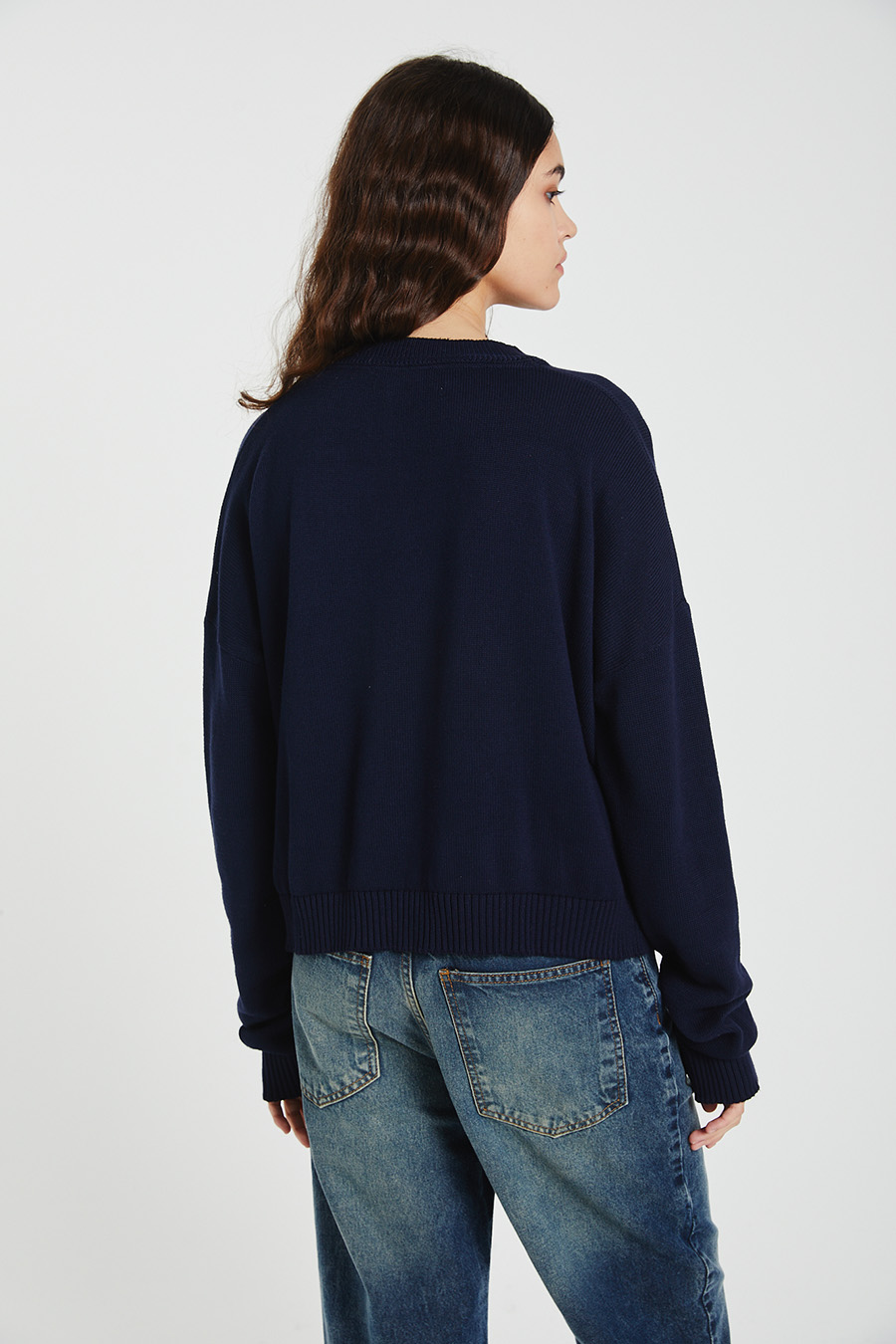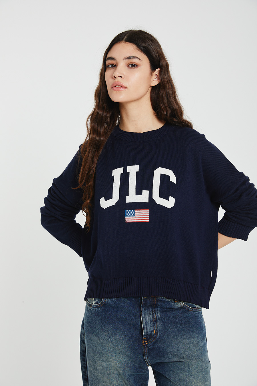 SWEATER DE CALCE HOLGADO, EN ALGODON CON ESTAMPADO EN EL FRENTE.